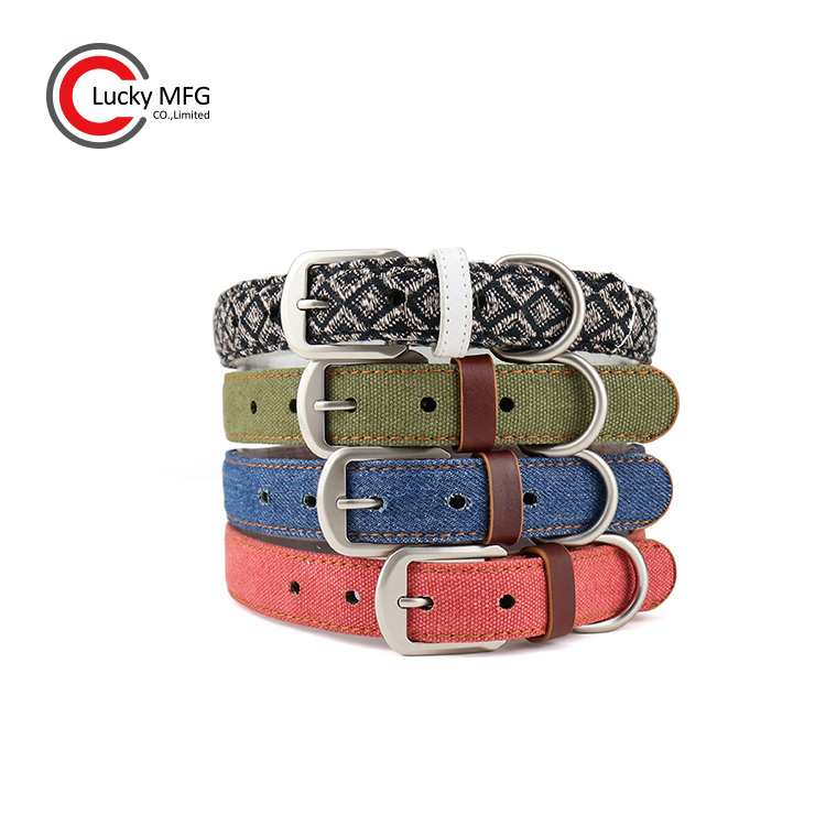 | Description: | Material:Washed Canvas/Jeans + Vintage Real Leather S:3/4"*11-14" M:1"*14-18" L:1"*18-22" High quality and luxury retro collar. Black metal, gold metal and silver metal buckle are available. |